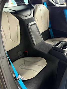 • Interior de Lujo: Cuero premium en tono claro con cinturones de seguridad en Azul BMW i, creando un contraste deportivo y elegante.