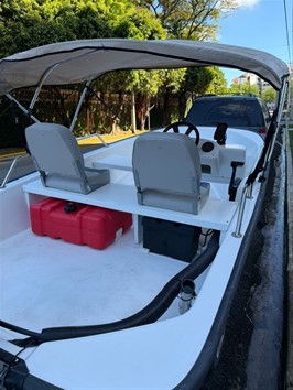 Bote boston whaler 13 pie, está como nuevo. Tiene motor mercury 50hp con encendido eléctrico, power trim y hélice de acero, escalera nueva, porta varas, tiene un tanque fijo de 12 galones, batería y sistema eléctrico nuevo.