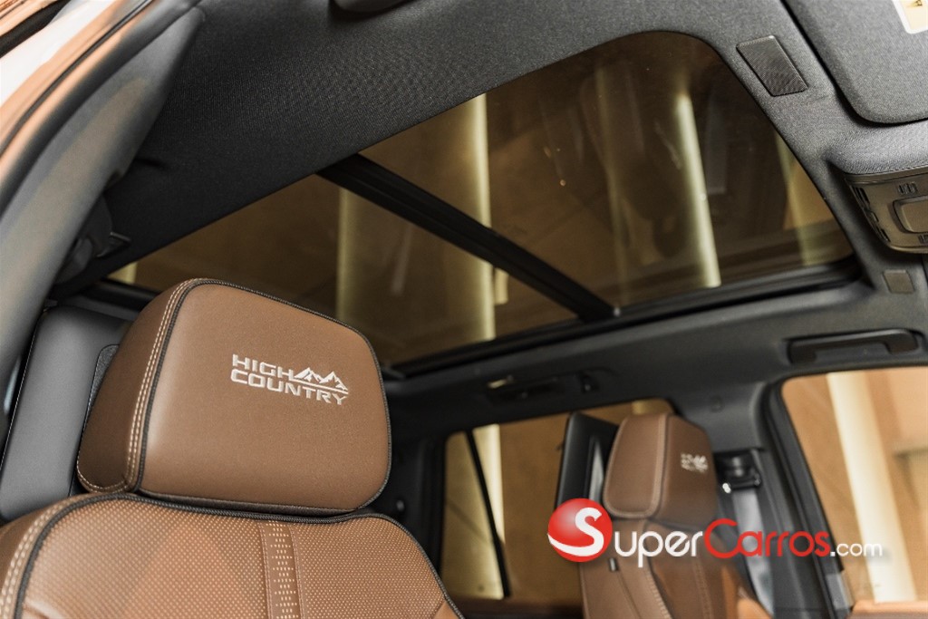 -Elementos de diseño exclusivo del High Country: detalles en cuero perforado, costuras especiales, molduras en madera auténtica, rejilla y emblemas únicos, rines de 24 en negro brillante y Head-Up Display.