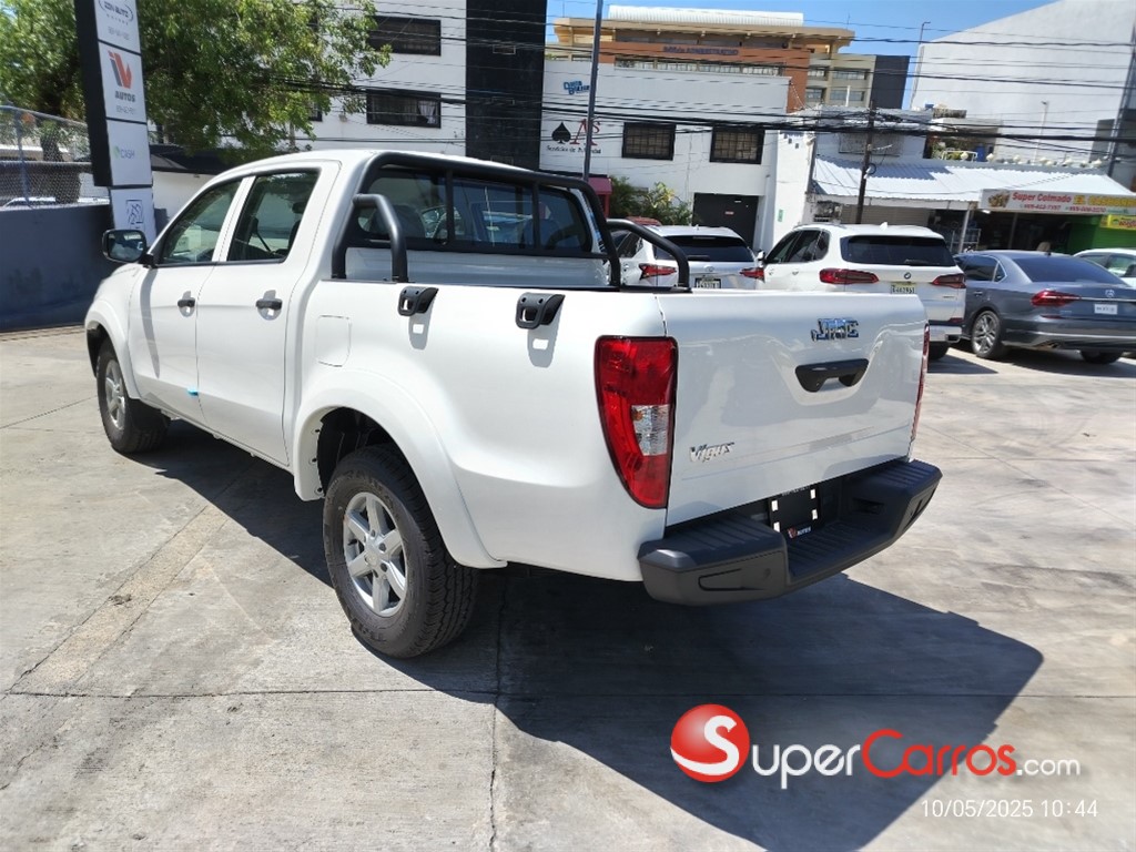 La JMC Vigus doble cabina 4x2 2025 tiene un motor Isuzu 2.5L turbo diesel con inyección directa, 140 HP de potencia y 315 Nm de torque. La transmisión es manual de 5 velocidades y cuenta con ABS y EBD en los frenos. Tiene capacidad para 5 pasajeros y una capacidad de carga de 845 kg. Detalles específicos: