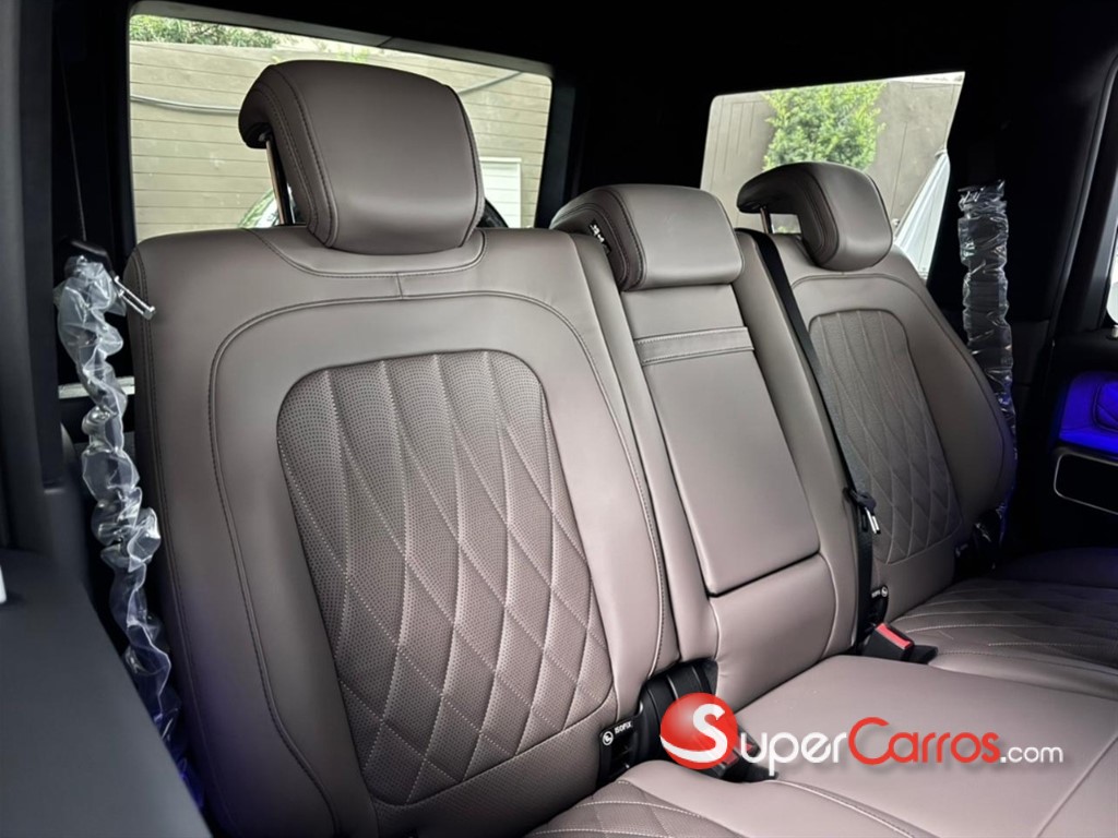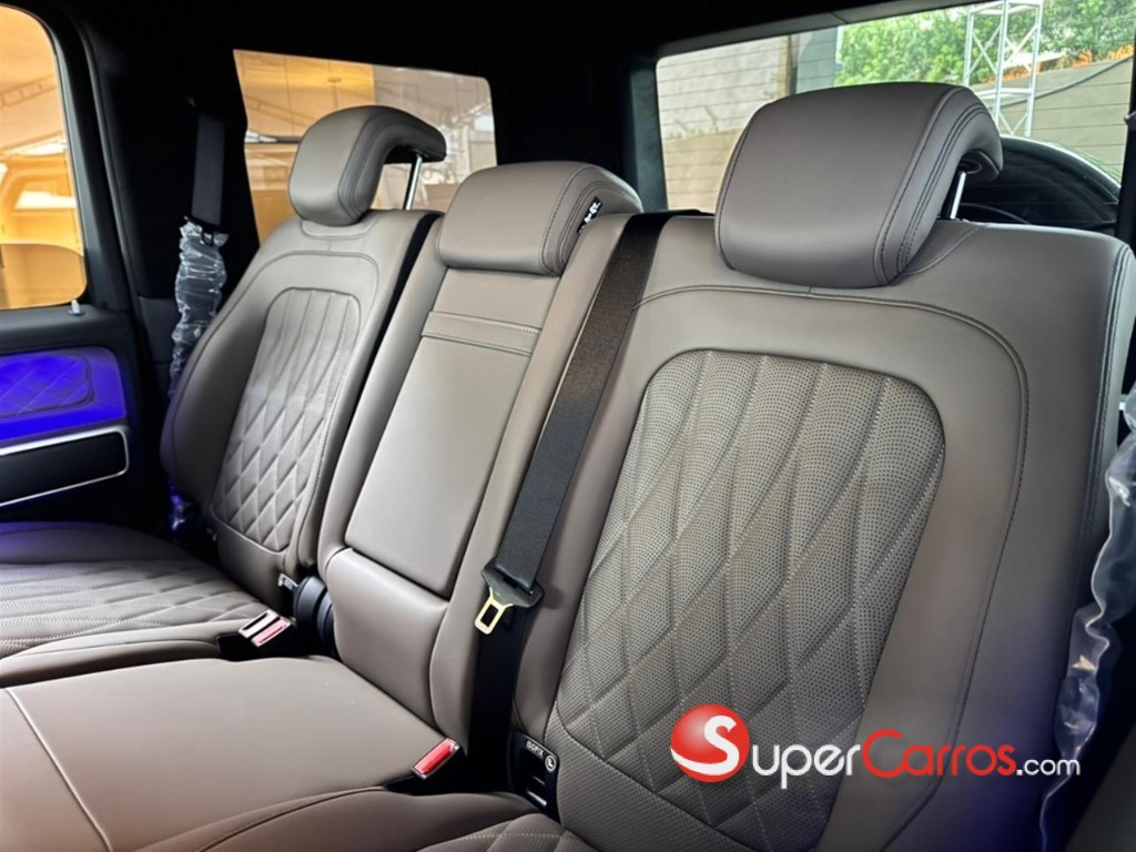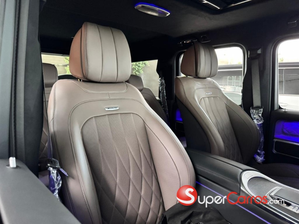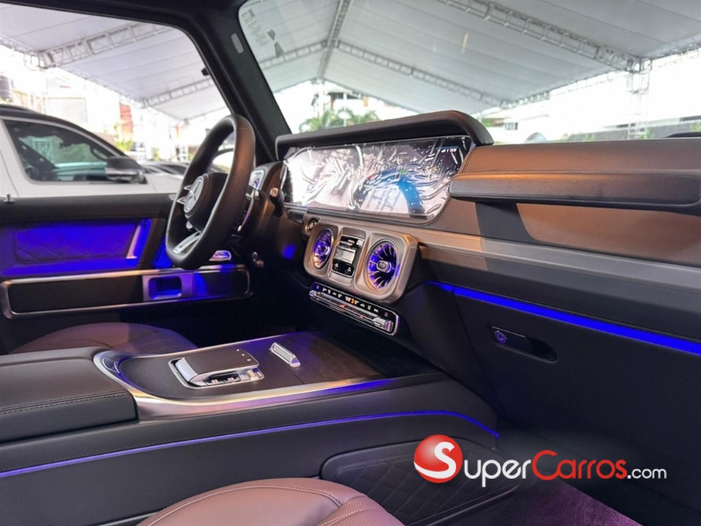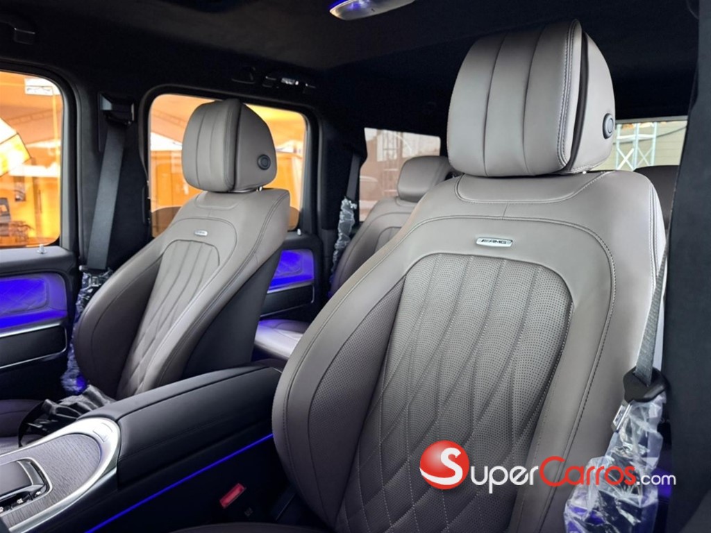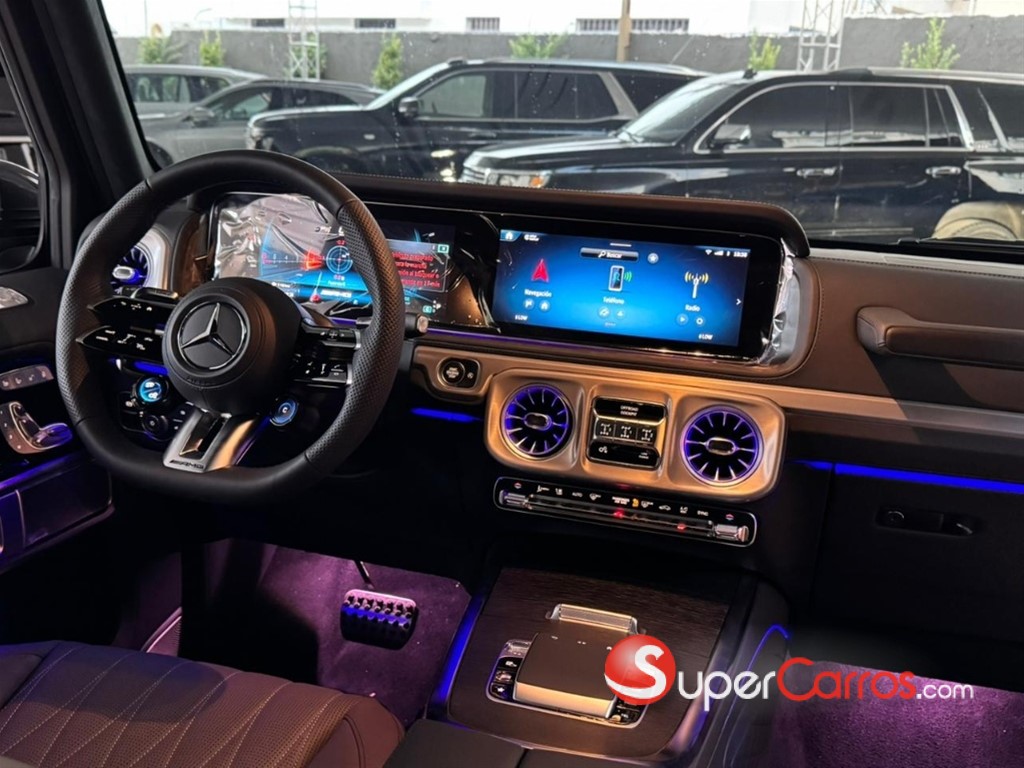 En el interior, el G63 ofrece una experiencia de lujo incomparable. Materiales premium como cuero de alta calidad, fibra de carbono y detalles metálicos crean un ambiente elegante y tecnológico. El sistema MBUX con doble pantalla, la iluminación ambiental configurable y los asientos deportivos AMG con múltiples ajustes convierten cada trayecto en una experiencia envolvente, cómoda y de alto nivel.