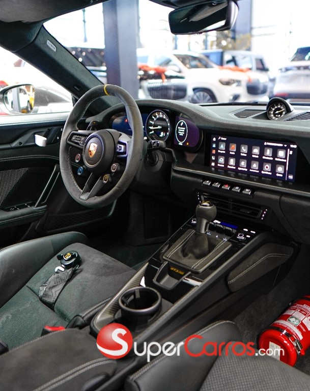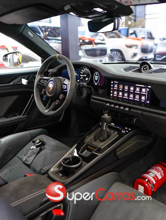 En su interior, el Porsche 911 GT3 RS mantiene un enfoque deportivo sin sacrificar la calidad premium, con acabados de alto nivel, asientos tipo bucket y tecnología enfocada en el conductor. Su diseño interior refleja claramente su ADN de competición.