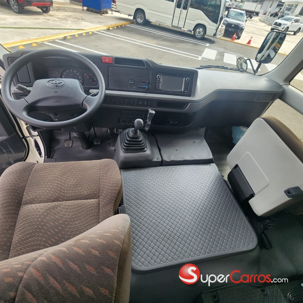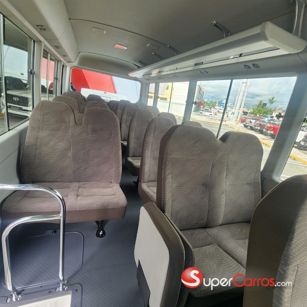 * Aire scondicionado * Asientos entela * Asientos corridos 2x2 * Relal dig tal * Puerta automatica * Tapasol * Espejo retro rison cierio * Espejos retrovisores laterales * Radio AN/FM/SketoothChse * Micrófono * Porta equipajas interior * Encendedor y ceniceros * Gula hidráulico * Limpiavidros intermitente - Limpiaxidros trasero * Parabrisas de protención laminados * Bumpers pintados * Flltro de alre tipo cyclone * Sedimentador del combustible * Tapón del comoustible con llave * Goma de repuesto en la parte de abajo