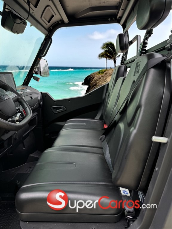 - Cabina: parabrisas de vidrio de seguridad con limpiaparabrisas, redes laterales, 3 plazas